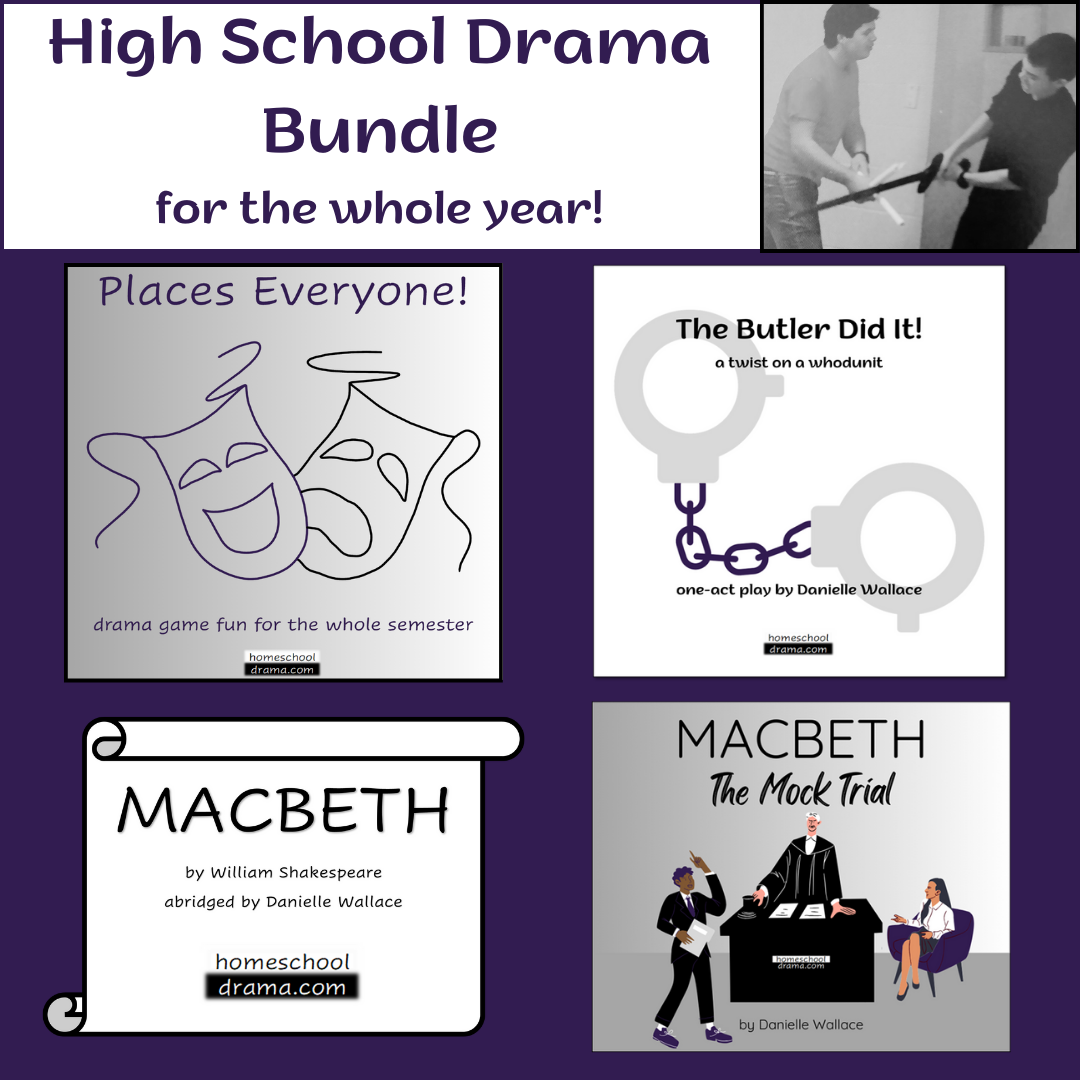 Get ready for a year of drama, mystery and intrigue with this high school drama curriculum bundle. Start the year having fun playing drama games to learn acting skills, then read or perform Macbeth 30-minute play to prepare to put Macbeth on trial for the murder of King Duncan. Lastly wrap up the school year with a mystery play called The Butler Did It! The secret is out. How will the butler respond?